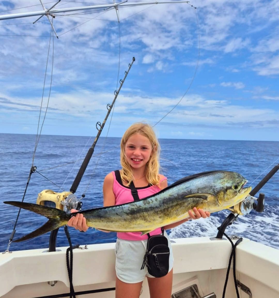 Mahi-mahi (koryfena) – znany ze swoich jaskrawych kolorów i widowiskowych skoków nad wodą, stanowi jedną z najbardziej widowiskowych zdobyczy.